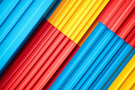 Colorful abstract background featuring geometric shapes in blue, red, and yellow for modern design