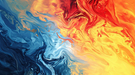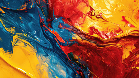 A captivating fluid art piece featuring bold blue, red, and yellow hues. The smooth textures and vibrant colors create an eye-catching visual experience perfect for various design projects.