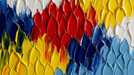 Discover a captivating canvas featuring vibrant brush strokes in blue, red, yellow, and more, creating an inspiring and dynamic visual texture full of energy.