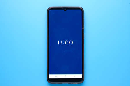 Kuala Lumpur, Malaysia- Circa May, 2021: Famous crypto mobile apps, Luno at smartphone on blue background.