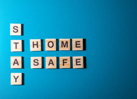 the word corona and stay home arranged nicely on a colorful background with space for texts