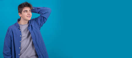 casual style male teenager isolated on color background with space for text