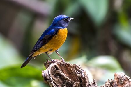 Beautiful Bird vivid niltava bird perching on log