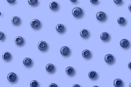 Colorful pattern of fresh blueberries on blue