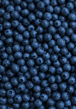 Macro Close-Up Top View of Fresh Blueberries for Fruit Background