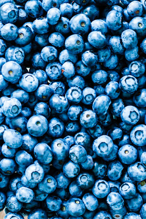 Freshly picked blueberries during harvest. For healthy lifestyle, fruits, and healthcare concepts.