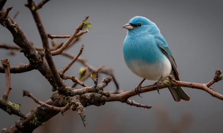 A vibrant blue bird perched on a branch, set against a soft-focus natural background, capturing the delicate beauty of avian life.