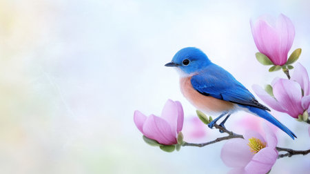 Eastern Bluebird, isolated on pastel background, stock photographic style