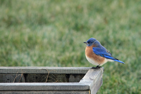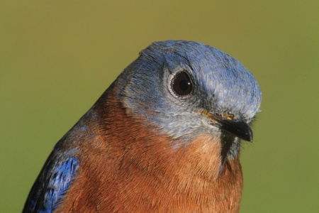 Male Eastern Bluebird (Sialia sialis) closeup with a green background