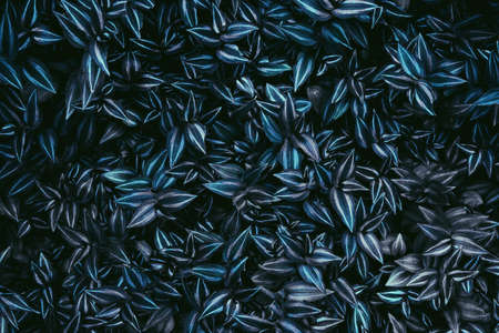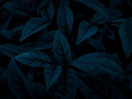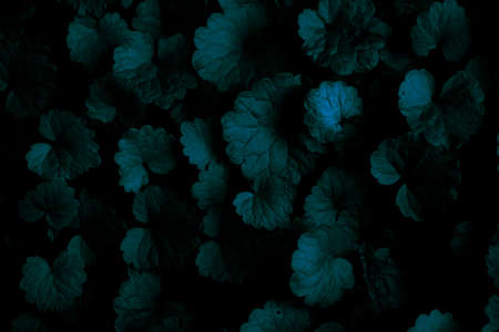 Blue plant leaves at night as surreal botanical background, minimal design backdrop