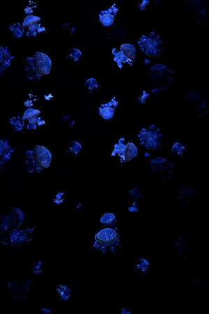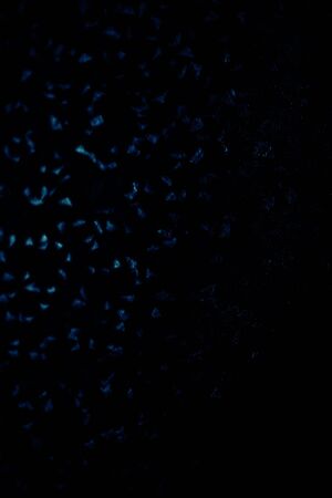 Ink water floating. Smoke cloud. Underwater explosion. Navy blue color gas in broken light bulb glass on dark conceptual abstract art background.
