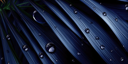 Dark Blue palm leaves dramatic photo effect background, realism, realistic, hyper realistic. Generative AI image weber.