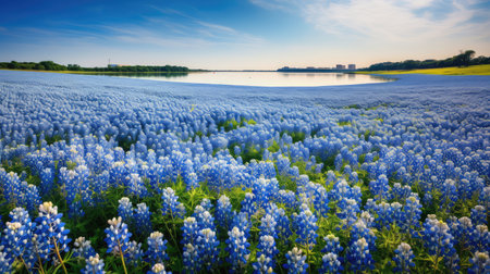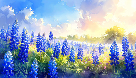 bloom texas blue bonnet illustration field vibrant, nature spring, scenic beauty bloom texas blue bonnet
