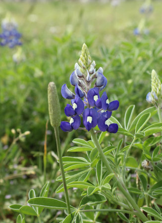 Blooming Bluebonnet wildflower at springtime near Dallas, Texas
