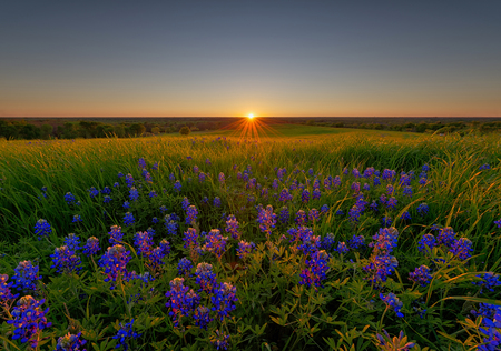 Texas Bluebonnets Bathed in Late Afternoon Sunshine