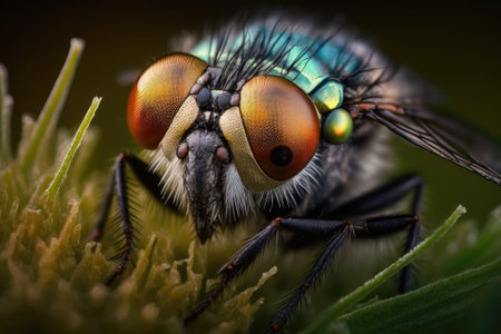 a fly on some grass, captured in close up. Generative AI