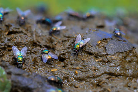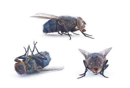 House flies in various natural gestures.Macro pictures of small insects that bring germs to people.