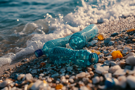 Caps from plastic bottles littering the beach a visual representation of environmental pollution