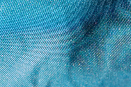 Blue Green Fabric Texture. Macro. Abstract Pattern of Textile. Close Up. Dramatic Lighting of Blue Denim. Background with Textured Material and Polyester Structure. Folded Fabric for Wallpaper