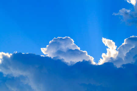 beautiful white clouds on the blue sky perfect for the background, and sum lighting in between the clouds