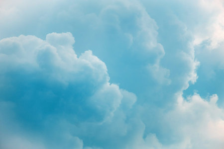 Beautiful white cumulus clouds and blue sky in a summer day.