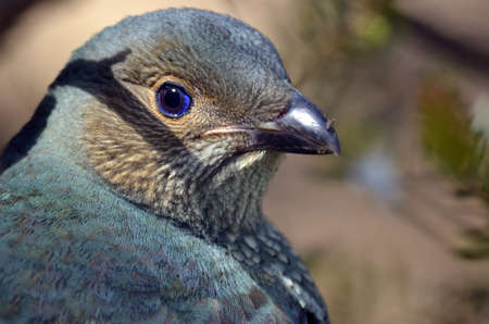 Close up portrait of crested pigeon bird, dove. Wild bird background