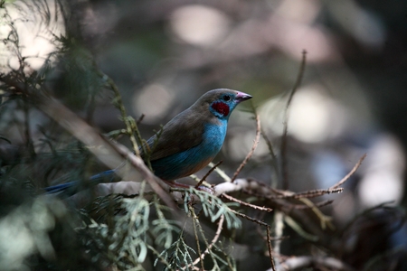 Blue waxbill Uraeginthus angolensis perched on a cactus