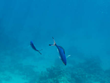 Fishes in clear tropical sea water. Natural background.