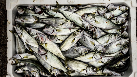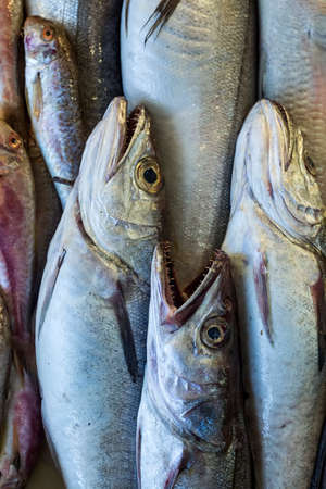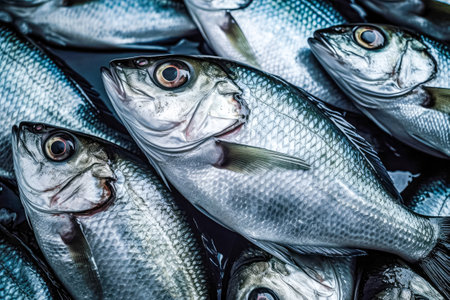 Fresh fish catch of the day creating an interesting seafood background texture.