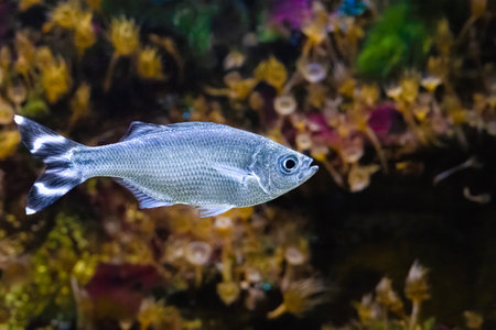 The barred flagtail, Kuhlia mugil, occurs on reefs at depths of 3 to 18 m