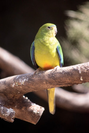 The Orange-bellied Parrot is a small, stocky, ground-dwelling parrot, primarily a grassy green with an orange spot under the belly.