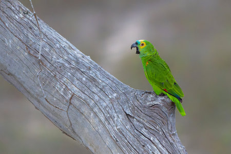 The turquoise-fronted amazon (Amazona aestiva), also called turquoise-fronted parrot, blue-fronted amazon or blue-fronted parrot sitting on a branch in the North Pantanal, Mato Gro