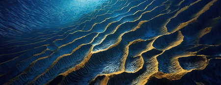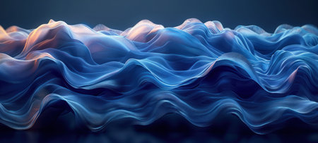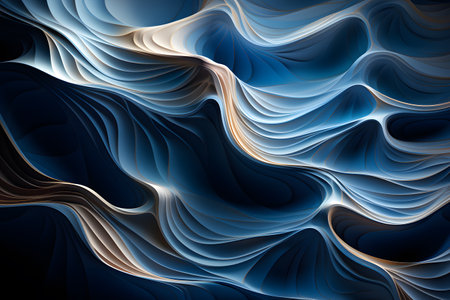 Abstract representation of ocean waves with fluid, layered patterns, showcasing a stunning play of light and shadow in vibrant blue tones. ideal for backgrounds, art projects, or creative design inspiration. Generative AI