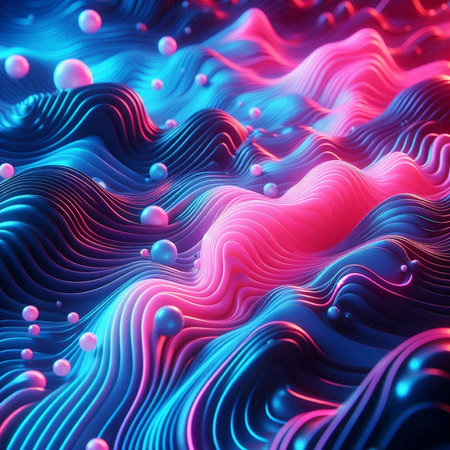 A close up of a colorful abstract image with waves, AI