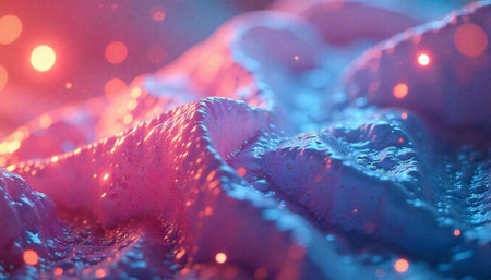 Microscopic mold patterns resembling alien landscapes, eerie beauty