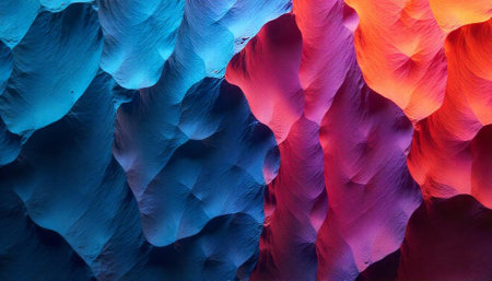 Abstract three-tone canyon formation in blue, pink and orange