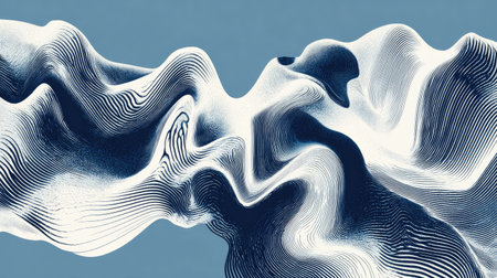 This abstract artwork features striking flowing lines in monochrome, set against a textured blue background. It embodies dynamic movement and elegance, making it perfect for creative projects.