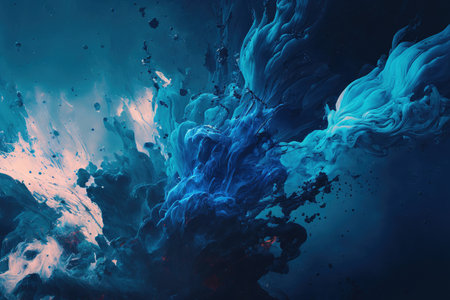 Abstract mixed paint backdrop in blue with blots