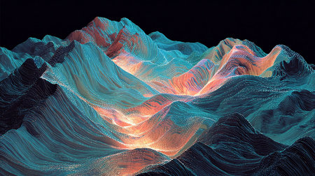 Abstract glowing blue mountain range with sparkling lights image