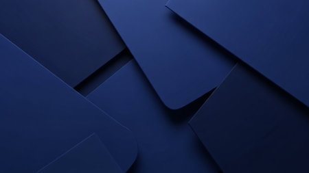 An abstract arrangement of overlapping deep blue geometric planes and curved shapes, creating soft shadows and a sense of depth.