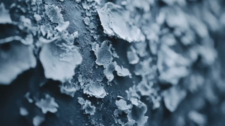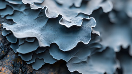 A detailed macro shot reveals the intricate, layered structure of blue lichen. The organic texture creates a sense of natural beauty and complexity.