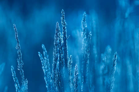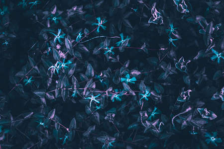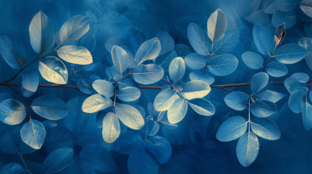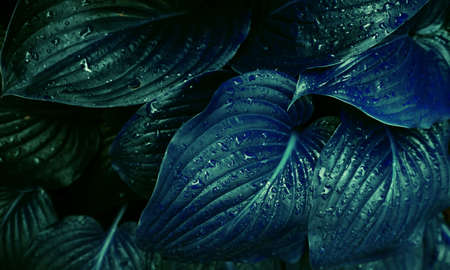 Blue plant leaves at night as surreal botanical background, minimal design backdrop