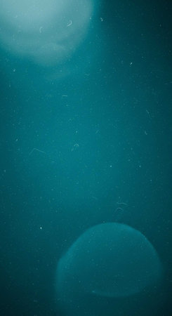 A serene underwater scene with a jellyfish swimming in the dark blue ocean with sunlight filtering through