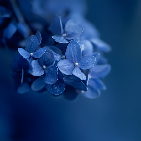 blue flower on a blue hydrangea flowers on a blue background. Shallow depth of field. Abstract nature background with copy space. Selective focus. blue background