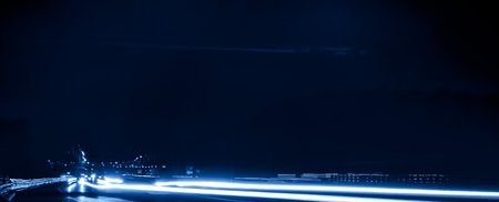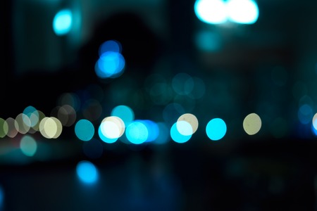 Beautiful and different bokeh lights of the night city in classic blue color.