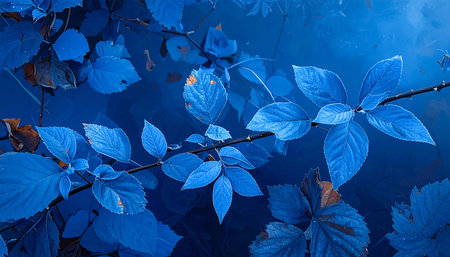 Serenity in Nature: Classic Blue Leaves. Generative AI