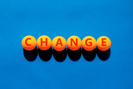 Change symbol. Concept word Change on beautiful orange table tennis ping pong balls. Beautiful blue background. Business change concept. Copy space.