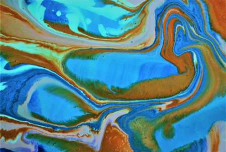 Blue and gold marbling pattern. Golden marble liquid texture. Fluid art.