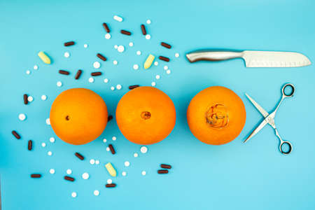orange navel with the concept of demonstrating the problems of rectum, anus, itching and burning, cracks and inflammation.