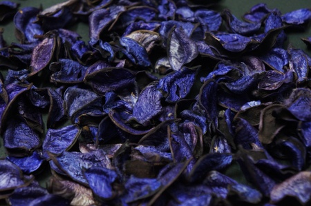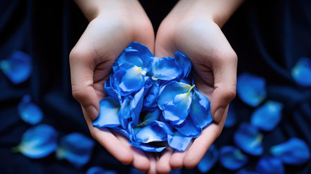 Blue petals scattered on dark background fragility and beauty